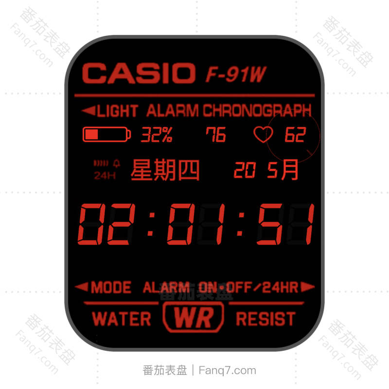 卡西欧CASIOGMW方块简约系列个性炫酷黑红.clock