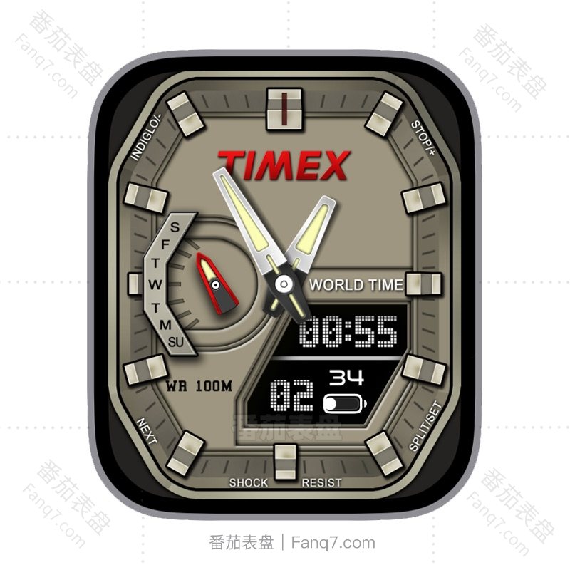 TIMEX天美时灰色星期电量日志数字时间刻度指针表盘.clock&clcok2
