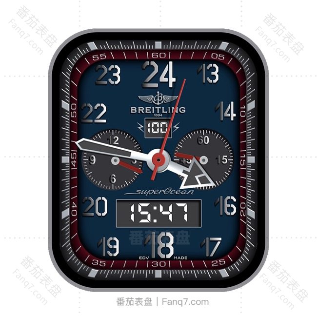 BREITLING百年灵暗蓝色双盘式数字时间表盘.clock&clcok2