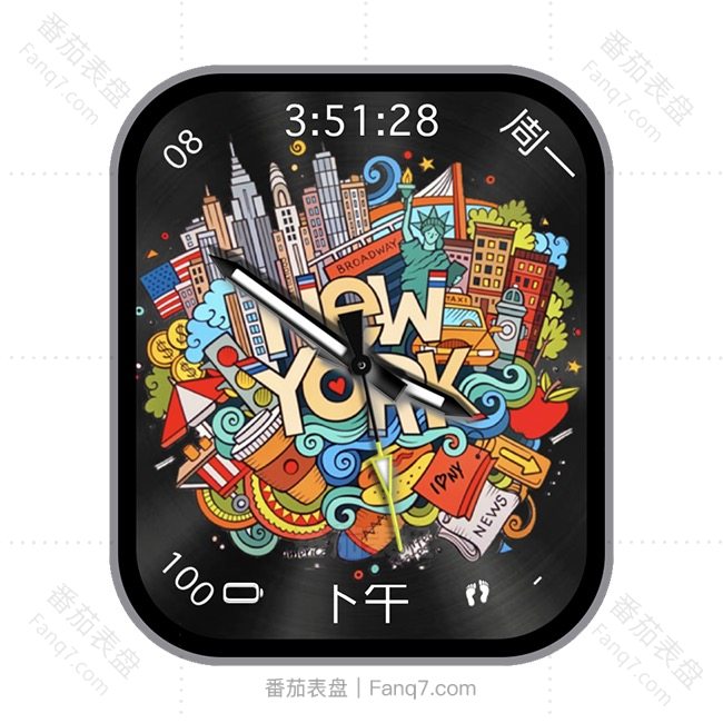 NEWYORK动漫风城市高楼面貌日期时间表盘.clock&clcok2