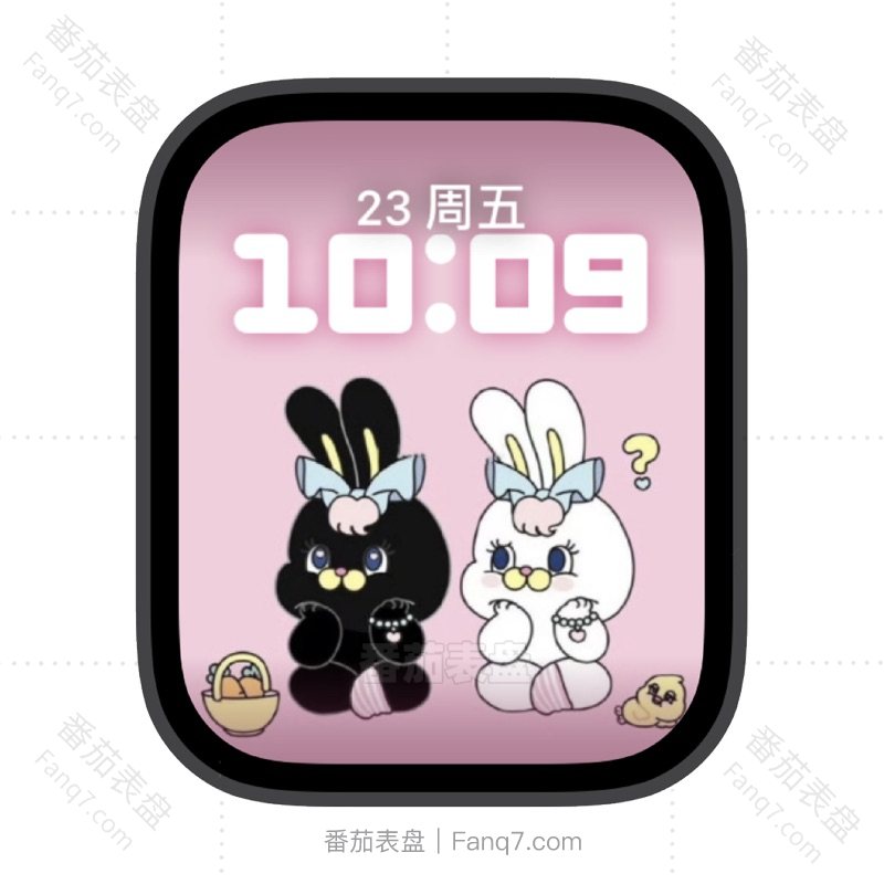 浅粉少女感黑白小兔子蝴蝶结苹果iwatch壁纸表盘.watchface