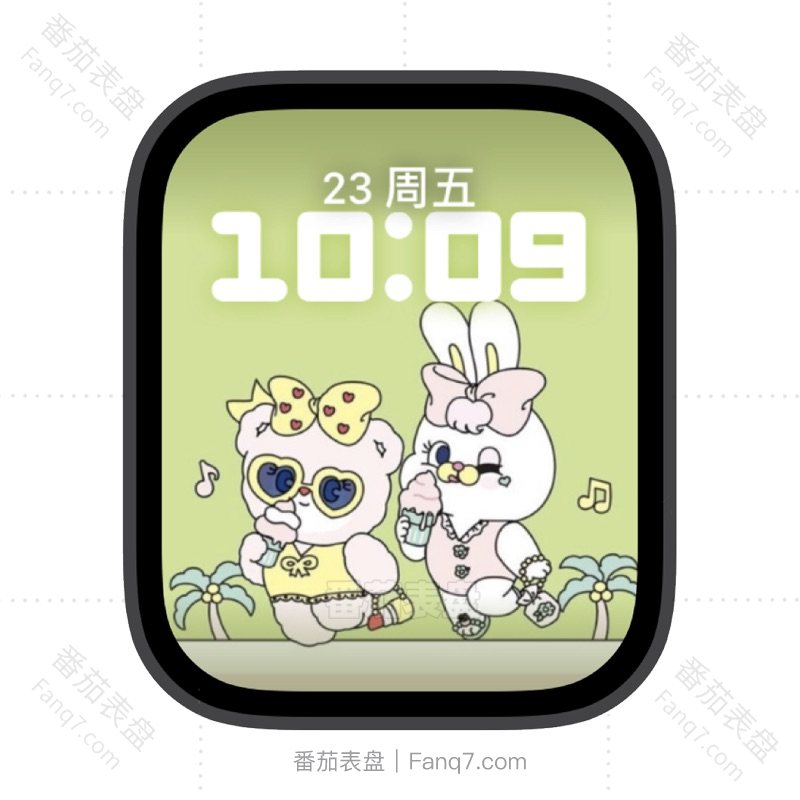 浅绿少女感莉可兔小熊沙滩苹果iwatch壁纸表盘.watchface
