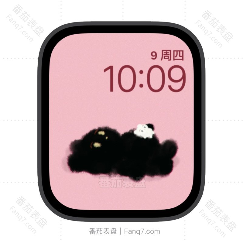 浅粉黑白小猫平躺苹果iwatch壁纸表盘.watchface