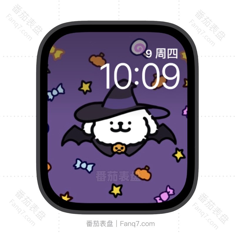 紫色万圣节白色小狗蝙蝠装苹果iwatch壁纸表盘.watchface