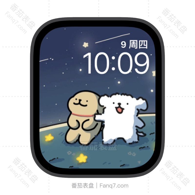 户外白色棕色小狗看流星雨苹果iwatch壁纸表盘.watchface