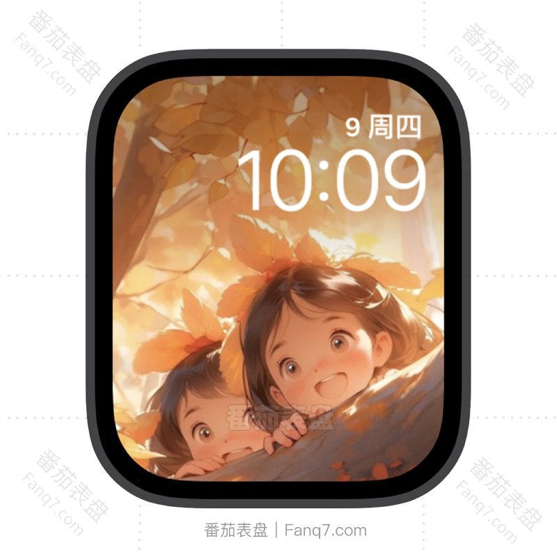 夕阳黄色树叶小女孩苹果iwatch壁纸表盘.watchface