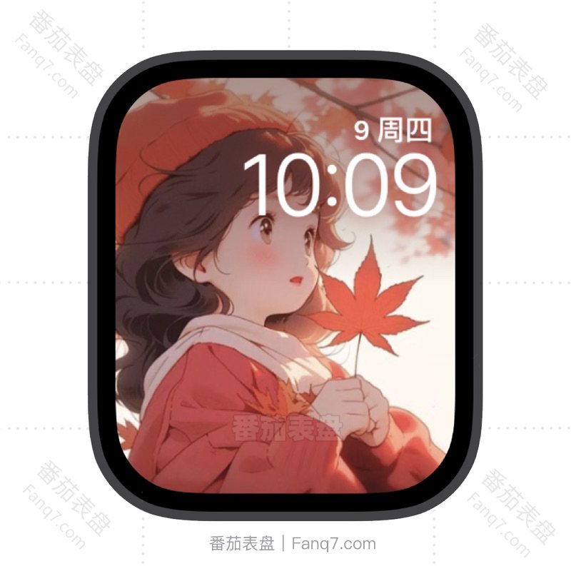 红色枫叶小女孩苹果iwatch壁纸表盘.watchface