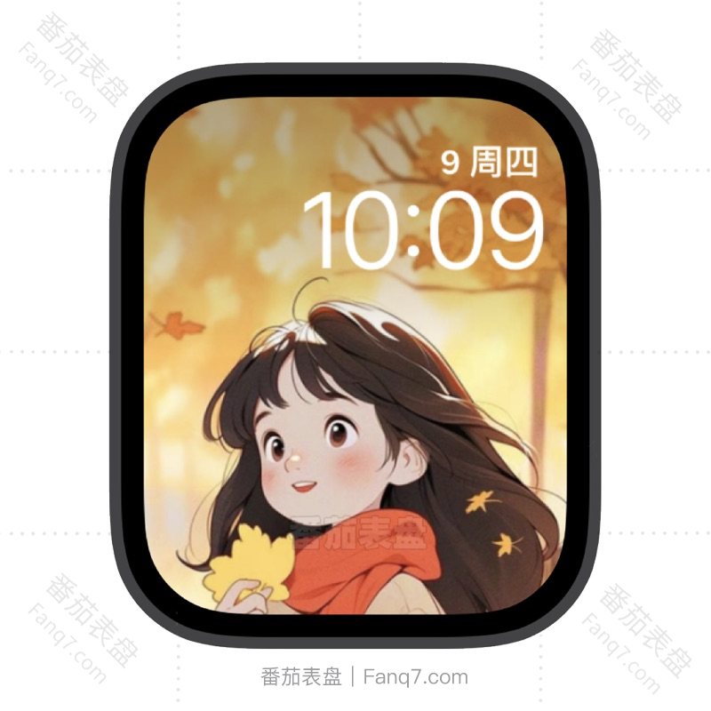 美丽小女孩落叶秋天苹果iwatch壁纸表盘.watchface
