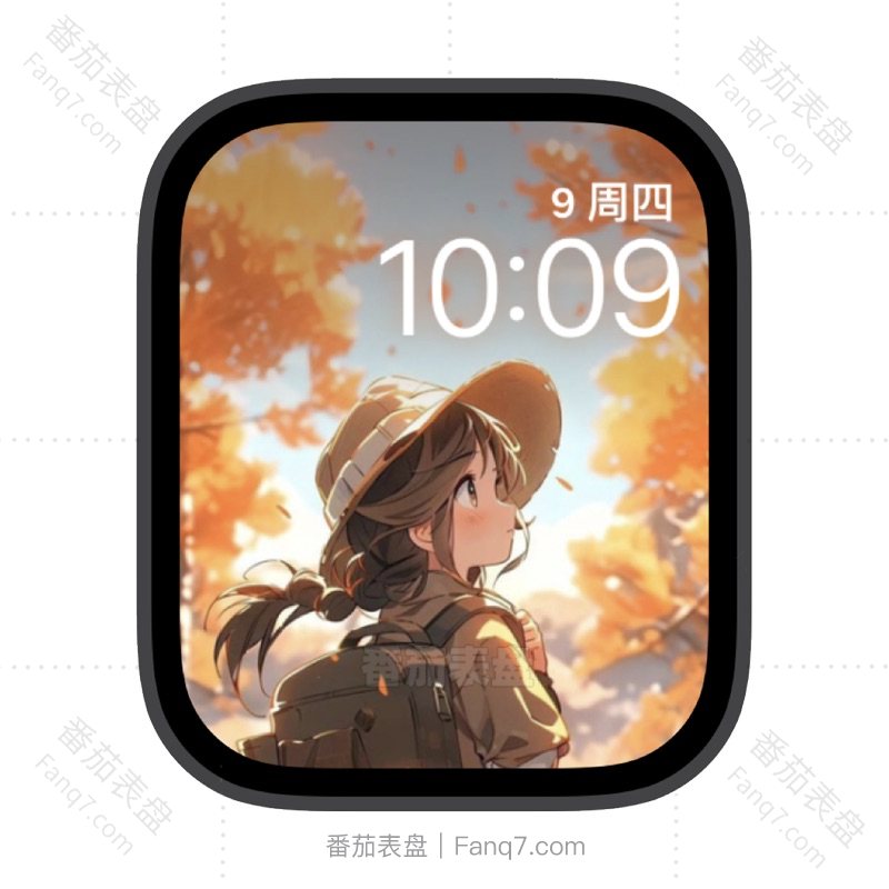 秋天落叶背书包小女孩苹果iwatch壁纸表盘.watchface