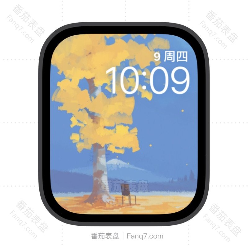 蓝色枫树落叶孤独椅子苹果iwatch壁纸表盘.watchface
