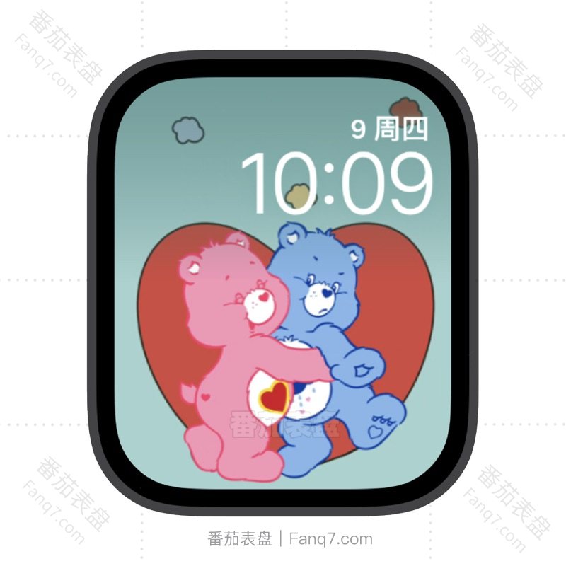粉色蓝色爱心熊拥抱苹果iwatch壁纸表盘.watchface