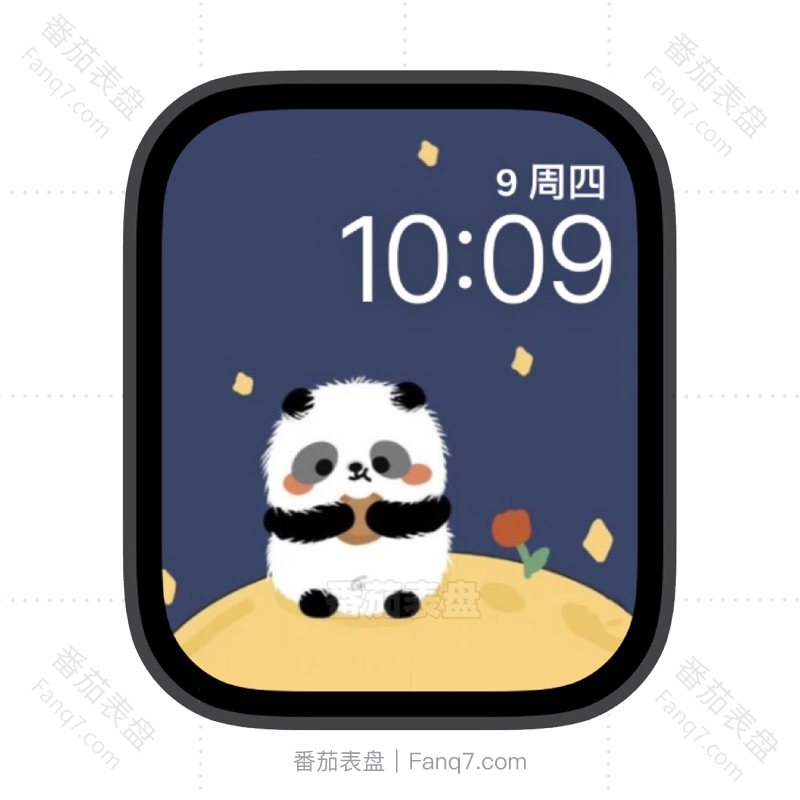 蓝色背景小熊猫吃饼干苹果iwatch壁纸表盘.watchface