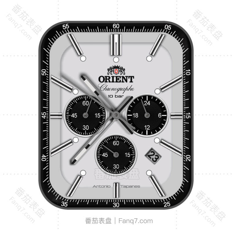 东方双狮ORIENT高级灰表盘黑色小三盘.clock