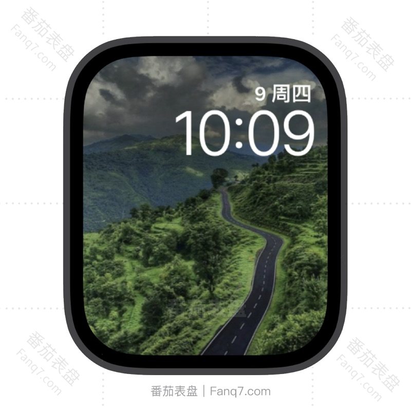 翠绿崇山峻岭中的柏油公路苹果iwatch壁纸表盘.watchface