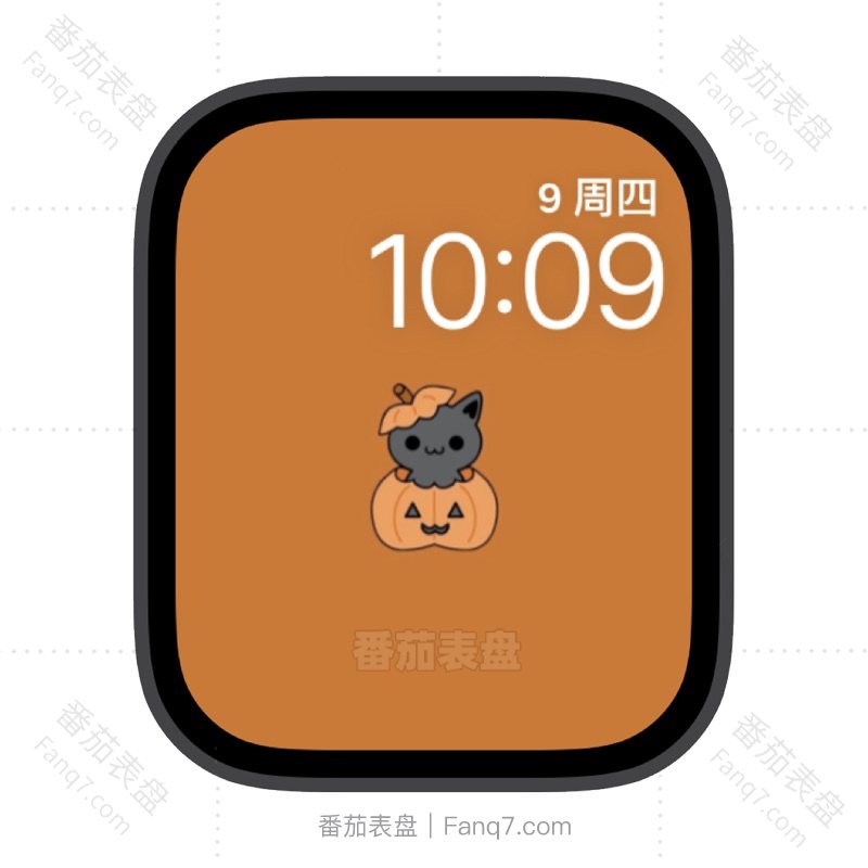 橙色背景圣诞节南瓜和灰色小猫苹果iwatch壁纸表盘.watchface