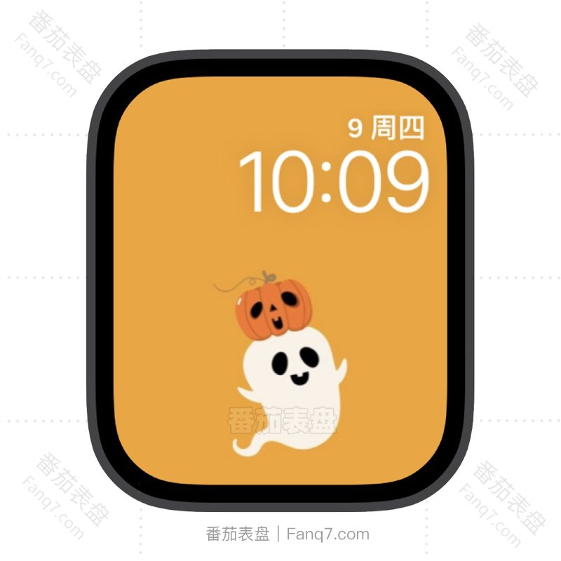 黄色背景白色幽灵和南瓜头苹果iwatch壁纸表盘.watchface