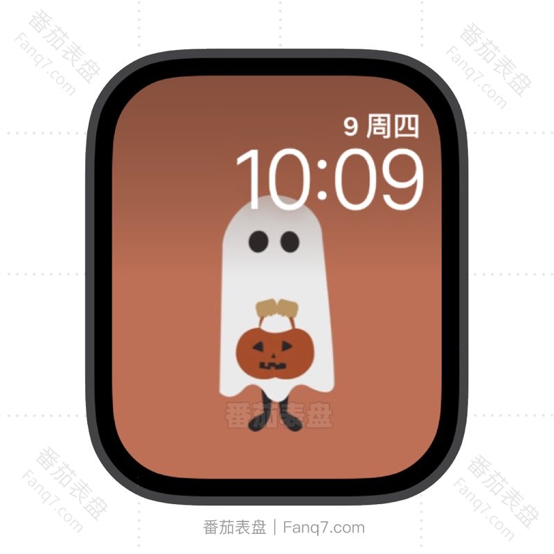砖红色背景可爱小鬼提着南瓜灯苹果iwatch壁纸表盘.watchface
