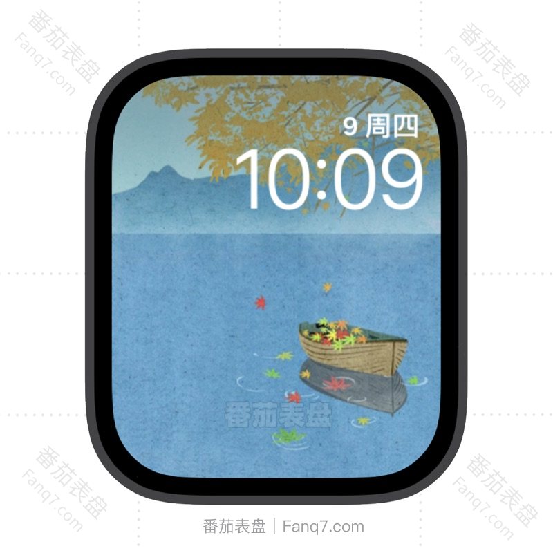 黄色落叶湖面上的独木舟苹果iwatch壁纸表盘.watchface