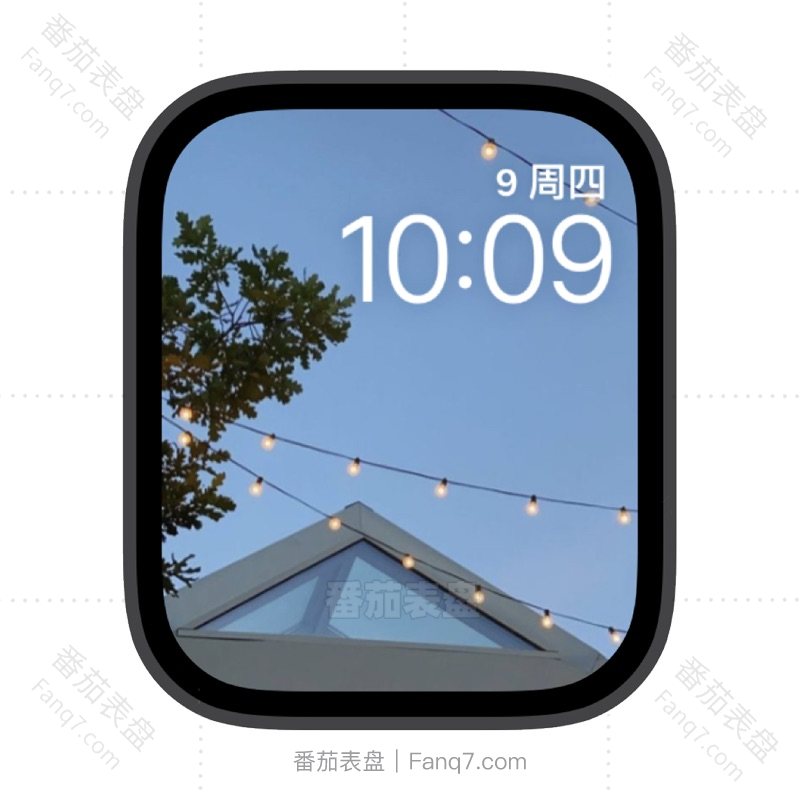 蓝色天空下天际线和灯串苹果iwatch壁纸表盘.watchface