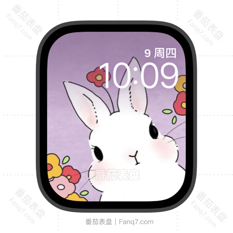 可爱小白兔大脸和小花苹果iwatch壁纸表盘.watchface