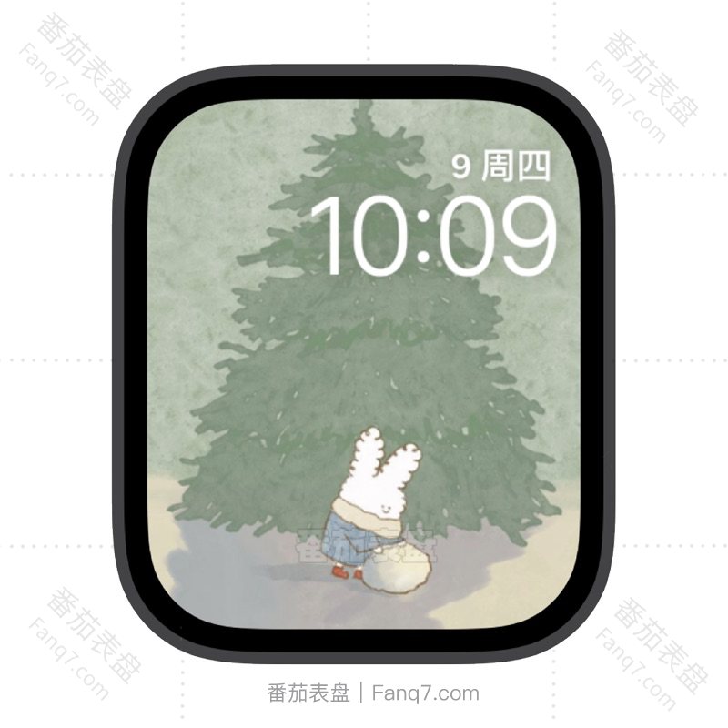 巨大圣诞树下的小白兔滚雪球苹果iwatch壁纸表盘.watchface