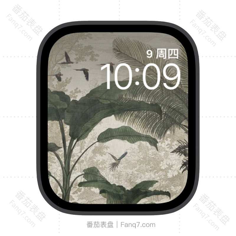 中国传统画花鸟绿叶苹果iwatch壁纸表盘.watchface