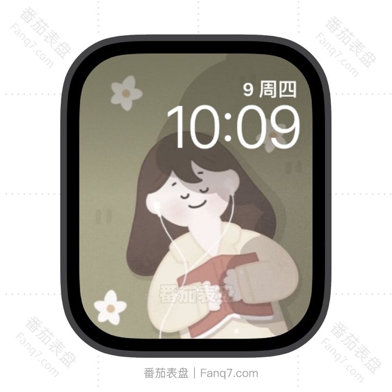 美丽少女闭眼带耳机听音乐苹果iwatch壁纸表盘.watchface