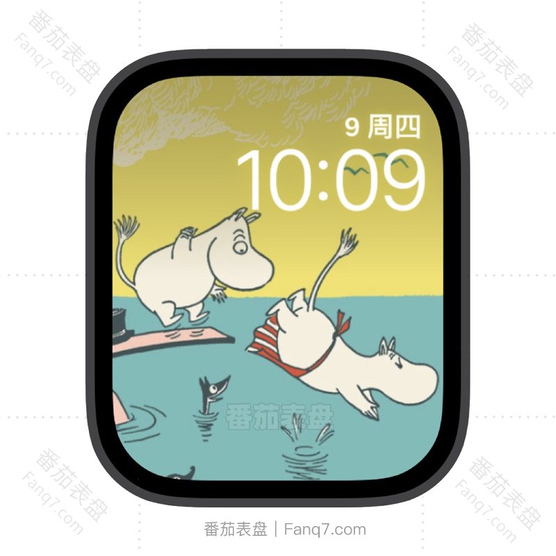 黄色背景两只河马跳水苹果iwatch壁纸表盘.watchface