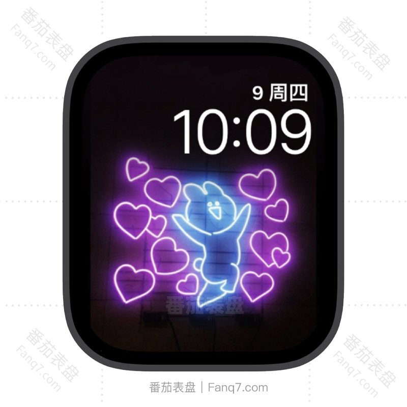 霓虹爱心和小白兔苹果iwatch壁纸表盘.watchface