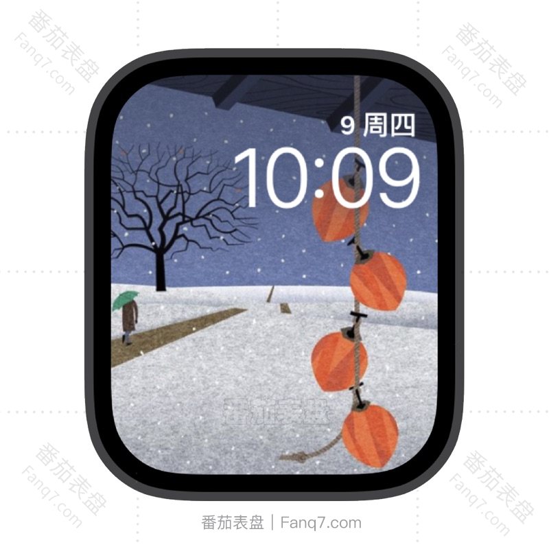 柿饼串和独自行走在雪地中的男人苹果iwatch壁纸表盘.watchface