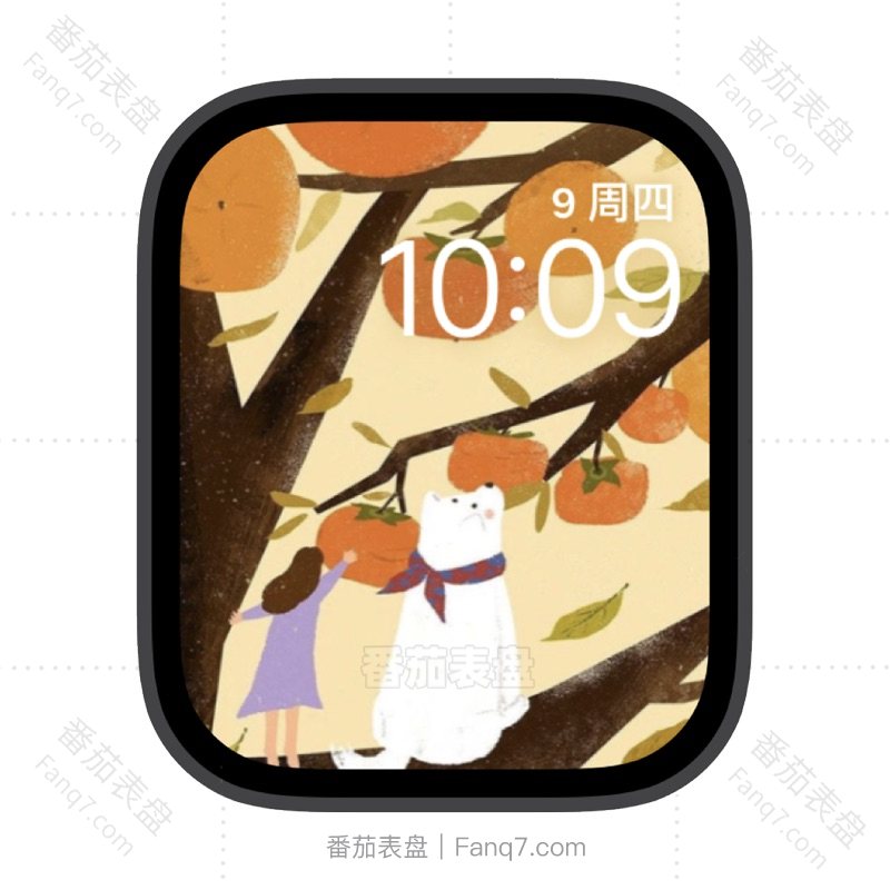 少女和白色小狗在柿子树上苹果iwatch壁纸表盘.watchface