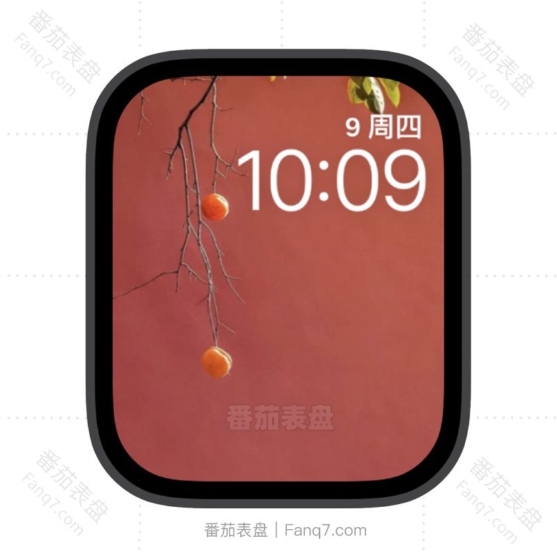 红色宫墙背景中的挂柿苹果iwatch壁纸表盘.watchface