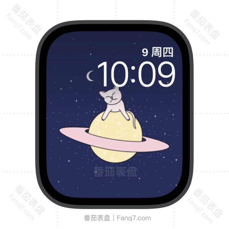 太空背景中的小猫踩在土星上苹果iwatch壁纸表盘.watchface