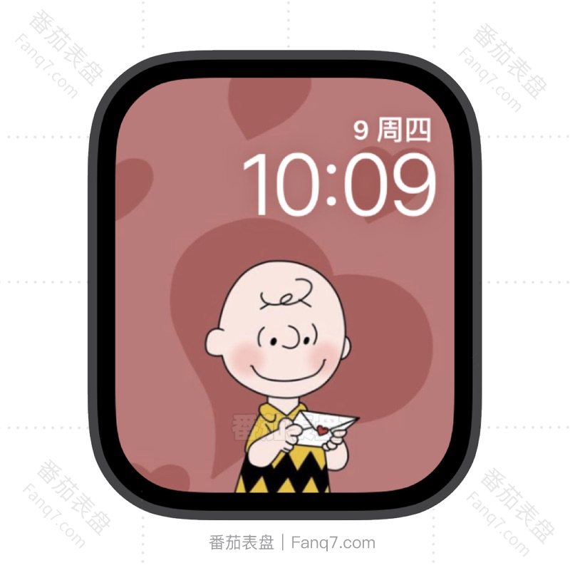 红色背景查理布朗手握爱心信封苹果iwatch壁纸表盘.watchface