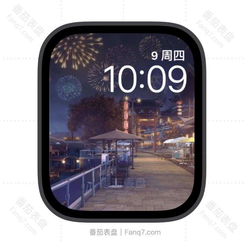 中国牌楼商业街烟花夜景苹果iwatch壁纸表盘.watchface
