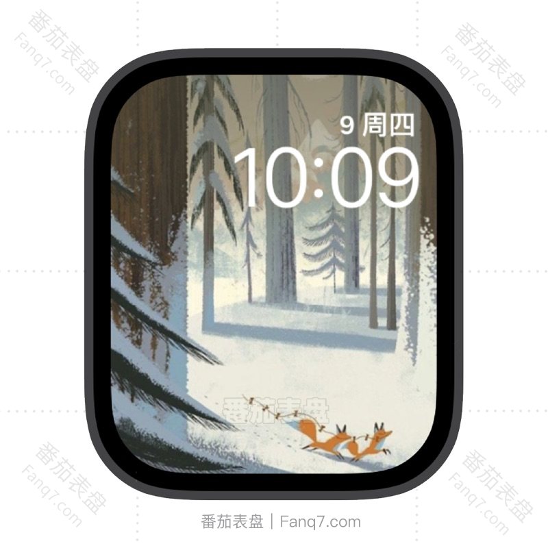 冬日森林两只狐狸漫跑苹果iwatch壁纸表盘.watchface