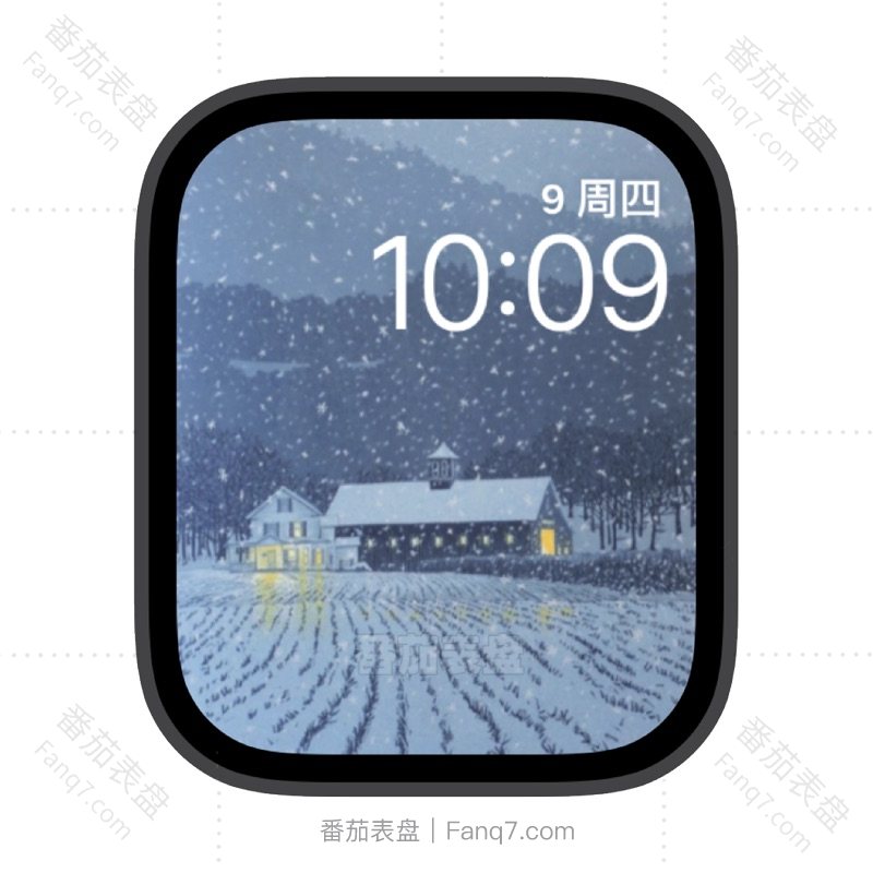 皑皑白雪覆盖下的乡村别墅夜景苹果iwatch壁纸表盘.watchface