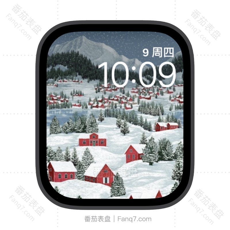 皑皑白雪覆盖下的红色小镇苹果iwatch壁纸表盘.watchface