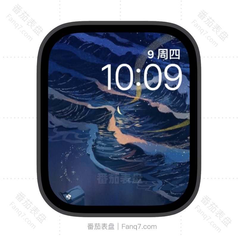 梦境中的大海浪花月亮苹果iwatch壁纸表盘.watchface