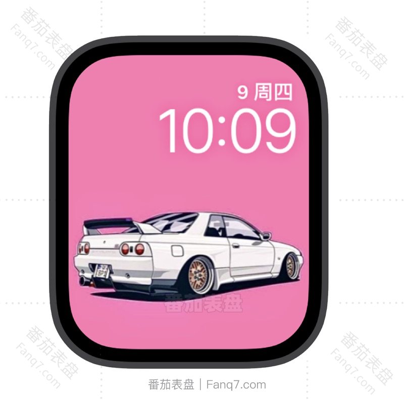 粉底白色小轿车漫画简约风格苹果iwatch壁纸表盘.watchface