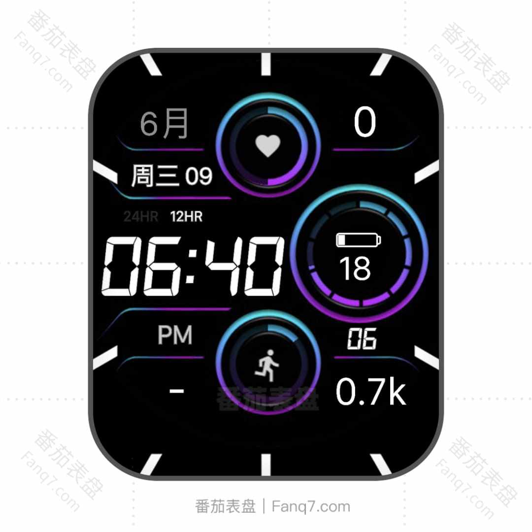 简约多彩渐变线条黑色表盘运动心率电量.clock