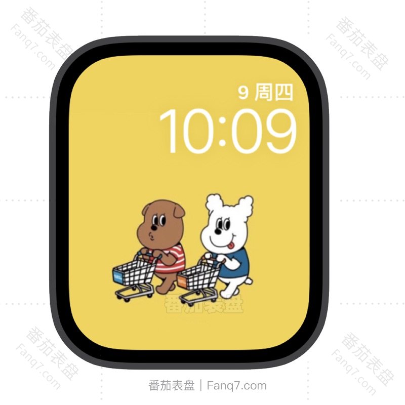 黄色底小狗和小羊在购物苹果iwatch壁纸表盘.watchface