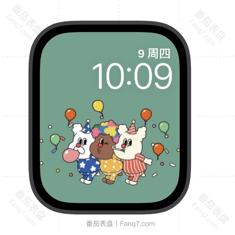 绿色底小猪和小羊在吹气球苹果iwatch壁纸表盘.watchface