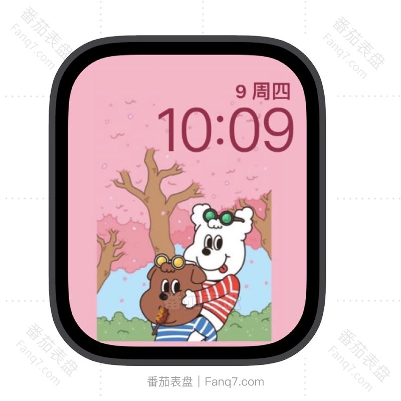 粉色底小猪小羊在看樱花苹果iwatch壁纸表盘.watchface