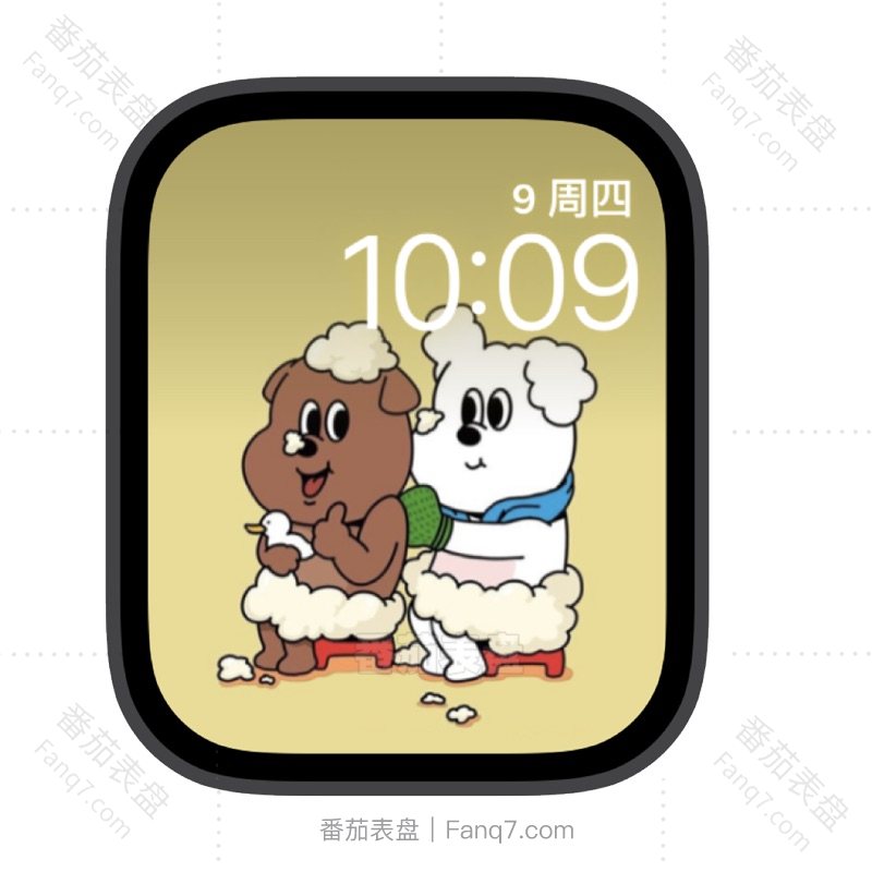 黄色底小猪小羊在洗澡苹果iwatch壁纸表盘.watchface