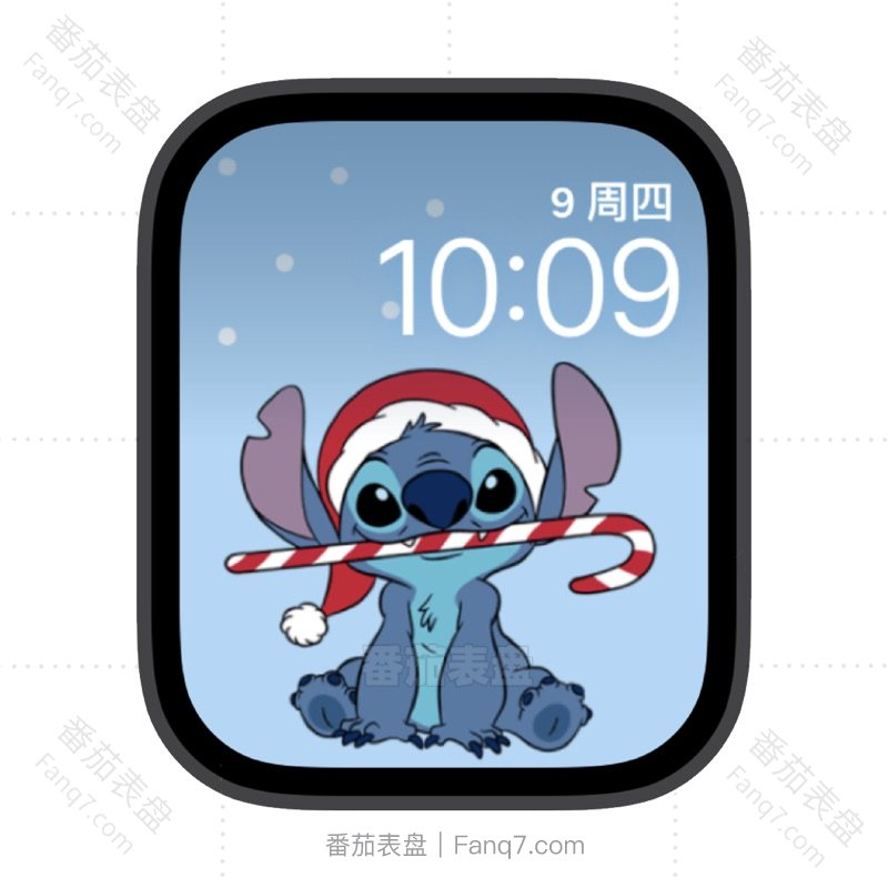 蓝色背景雪花戴着圣诞帽的史迪奇苹果iwatch壁纸表盘.watchface