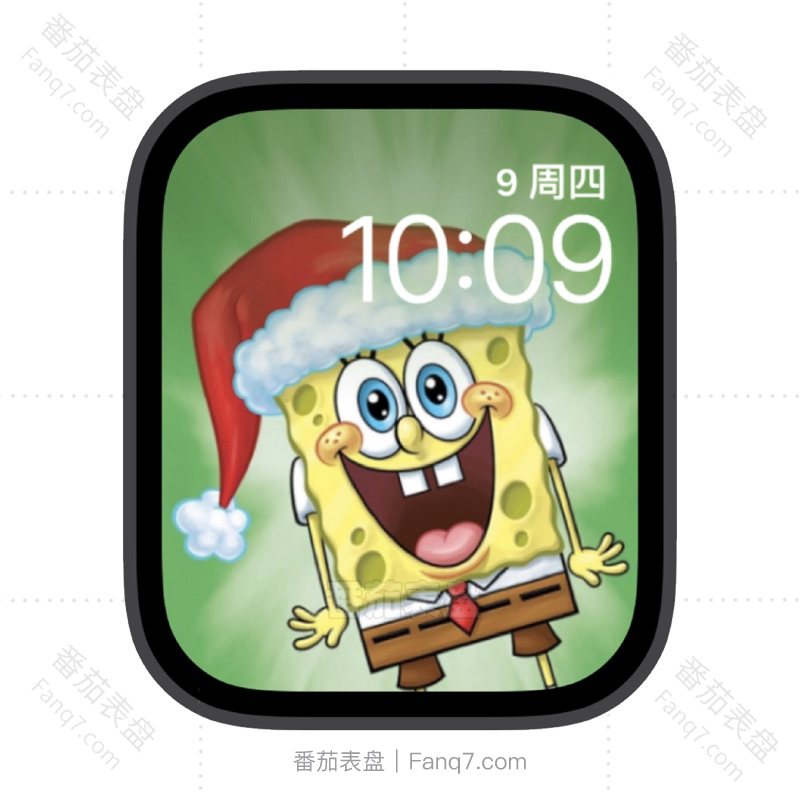 戴着圣诞帽的海绵宝宝苹果iwatch壁纸表盘.watchface