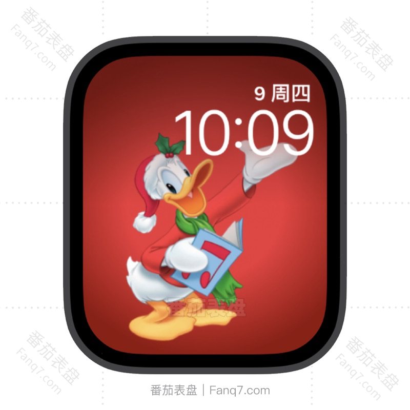 红色背景穿着圣诞节服装的唐老鸭苹果iwatch壁纸表盘.watchface