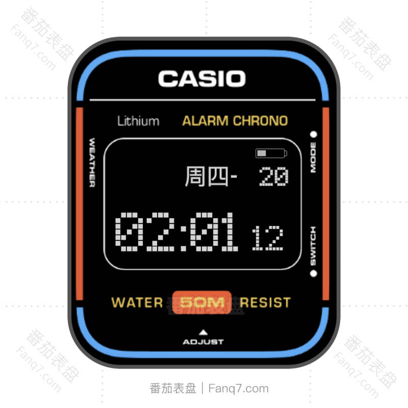 卡西欧CASIO简约复古表盘蓝橙线条表盘.clock