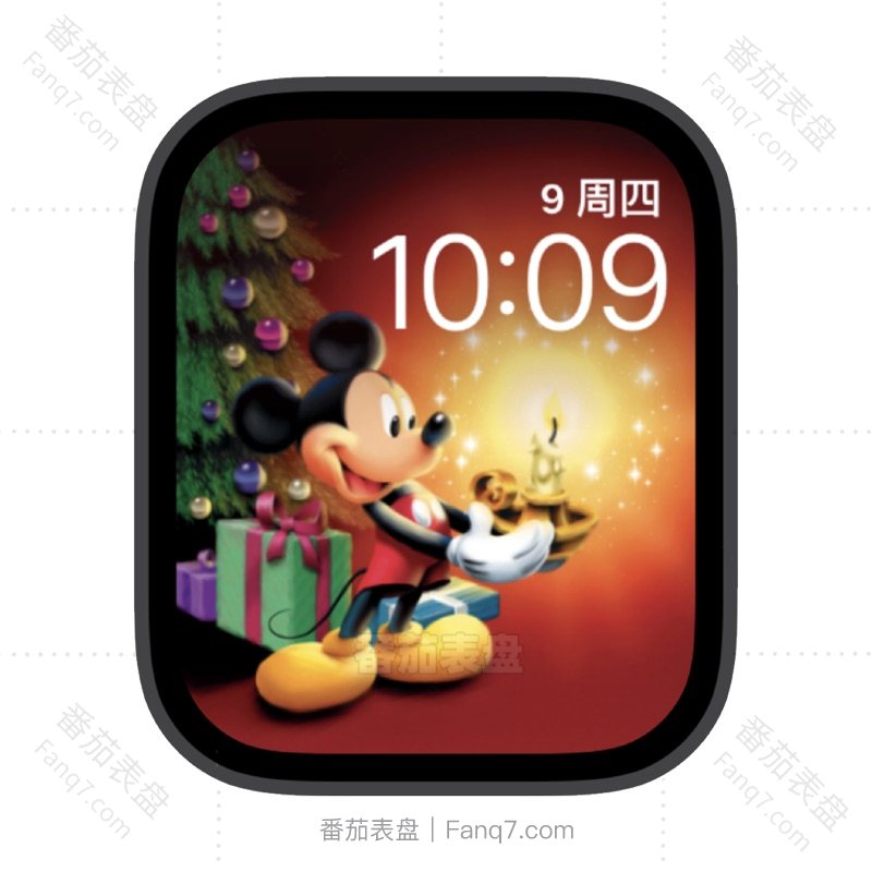 圣诞树下拿着蜡烛的米奇苹果iwatch壁纸表盘.watchface